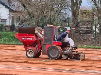 Heute wurden unsere Plätze für die Saison 2023 vorbereitet. Alter Sand abgetragen, neuer Sand rauf, Linien setzen, nochmal Sand rauf - immer alles schön pressen und einschwemmen und fast fertig ist unser neuer Sandplatz.