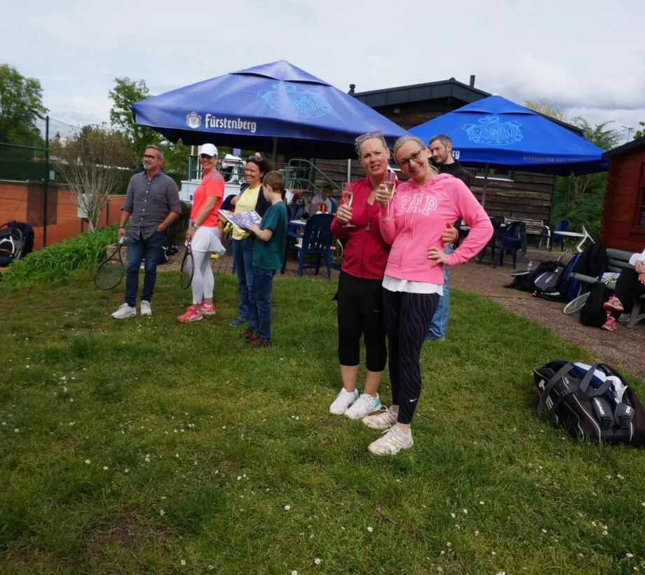 Siegreich waren Martina Strittmatter und Lothar Müller gegen Alexander Heinz und Paul Assmann. Lothar Müller (von einigen “der ewige Lothar” genannt) hat dann auf seinen Sieg alle Teilnehmer zu einem Glas Sekt eingeladen, auch um auf den wunderschönen Tennistag anzustoßen.